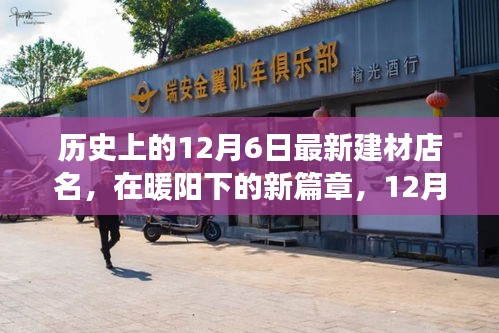 摘要:歷史上的12月6日,一家最新建材店迎來開業(yè)典禮,陽光照耀著店鋪,標志著新篇章的開啟。這家溫馨的建材店在暖陽下展現(xiàn)出活力與生機,講述著關于建筑材料的故事。該店提供各類新穎建材,為顧客帶來優(yōu)質(zhì)的購物體驗,同時也標志著行業(yè)的新發(fā)展。這一天成為這家建材店歷史上值得紀念的時刻。
