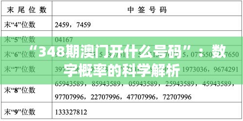 “348期澳門開什么號碼”:數(shù)字概率的科學解析