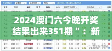 隨著時(shí)光的流轉(zhuǎn),澳門六合彩迎來了第351期的開獎盛典,作為澳門地區(qū)的一種獨(dú)特娛樂方式,彩票不僅承載著深厚的文化底蘊(yùn),也反映了澳門特區(qū)政府對彩票行業(yè)的規(guī)范化管理和理性發(fā)展的堅(jiān)定決心,每一次開獎結(jié)果的公布,都牽動著無數(shù)參與者的心弦,帶來緊張與興奮的交織,本文將圍繞第351期澳門六合彩的開獎結(jié)果,深入探討其背后的意義以及政府政策對彩票業(yè)的影響。