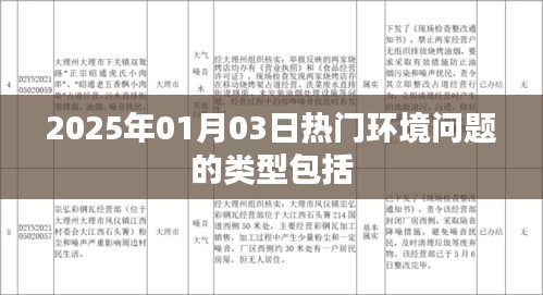 隨著全球環(huán)境形勢日益嚴(yán)峻,環(huán)境保護(hù)已成為全球關(guān)注的重點(diǎn)話題,2025年1月3日,世界各地的環(huán)境議題持續(xù)發(fā)酵并呈現(xiàn)出多樣化、復(fù)雜化的特點(diǎn),本文將探討在這一日期中,熱門環(huán)境問題的類型及其特點(diǎn)。