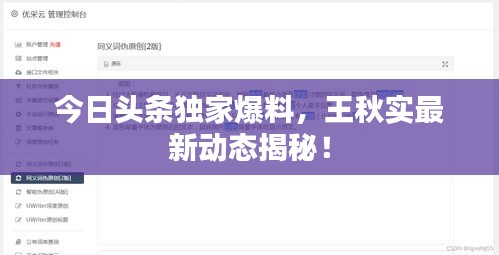 關(guān)于王秋實(shí)的消息在今日頭條上備受關(guān)注,作為備受矚目的公眾人物,王秋實(shí)的最新動態(tài)引發(fā)了廣大網(wǎng)友的熱烈討論,本文將對王秋實(shí)的最新消息進(jìn)行整理報道。