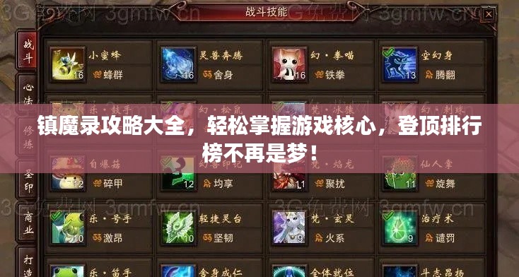 在鎮(zhèn)魔錄中,技能搭配至關(guān)重要,玩家需要根據(jù)角色的特性和敵人的屬性,合理搭配技能,以達到最佳戰(zhàn)斗效果,不斷升級技能,提高技能傷害和效果。