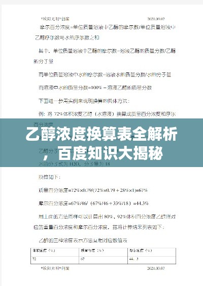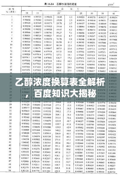乙醇濃度換算表全解析,百度知識(shí)大揭秘