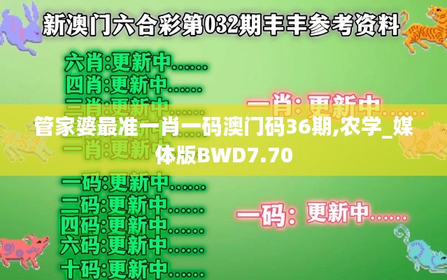 在許多人的印象中,博彩從來都是一種神秘而又充滿魅力的活動。而在這個領域中,"管家婆"這一名詞則顯得尤為突出。它不僅是一個關于數(shù)字和財富的傳奇,更是一個關于智慧與策略的象征。特別是在澳門碼36期的背景下,"管家婆最準一肖一碼"更是吸引了不少人的目光。那么,究竟什么是“管家婆”?這其中又蘊藏著怎樣的奧秘呢?